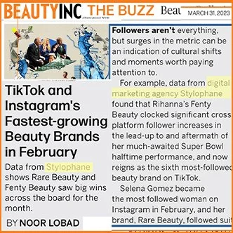 Data from Stylophane shows Rare Beauty and Fenty Beauty saw big wins across the board for the month By Noor Lobad