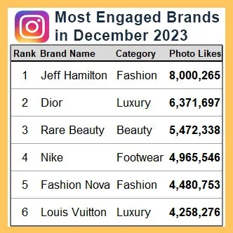 January 2023 - Instagram Most Engaged Brands for Fashion and Beauty Industries